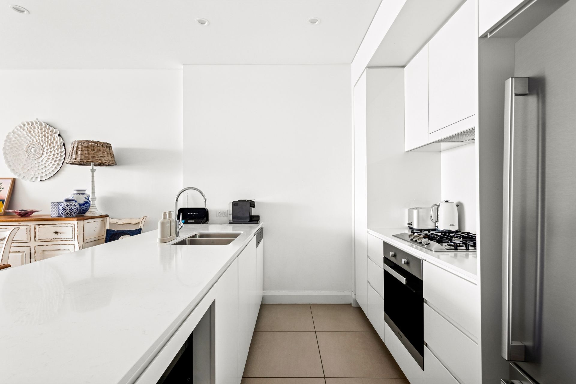 – Miele gas kitchen with Caesarstone benchtops and bespoke joinery