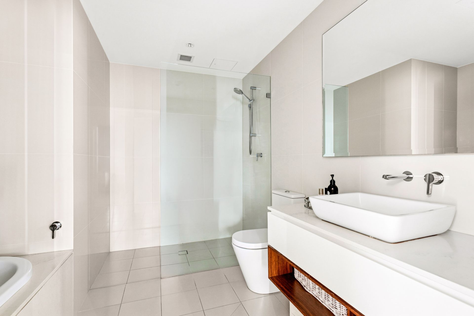 – Master bedroom with direct balcony access, dual separate his and her wardrobes and access to the luxurious ensuite with frameless glass walk in shower and stone encased bath tub